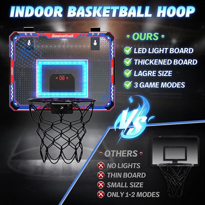 GMAOPHY Basketball Hoop Indoor for 5 6 7 8 9 10+ Year Old Boys Kids, Birthday Gift Sport Toys, Mini Basketball Hoop with Electronic Scoreboard Over The Door