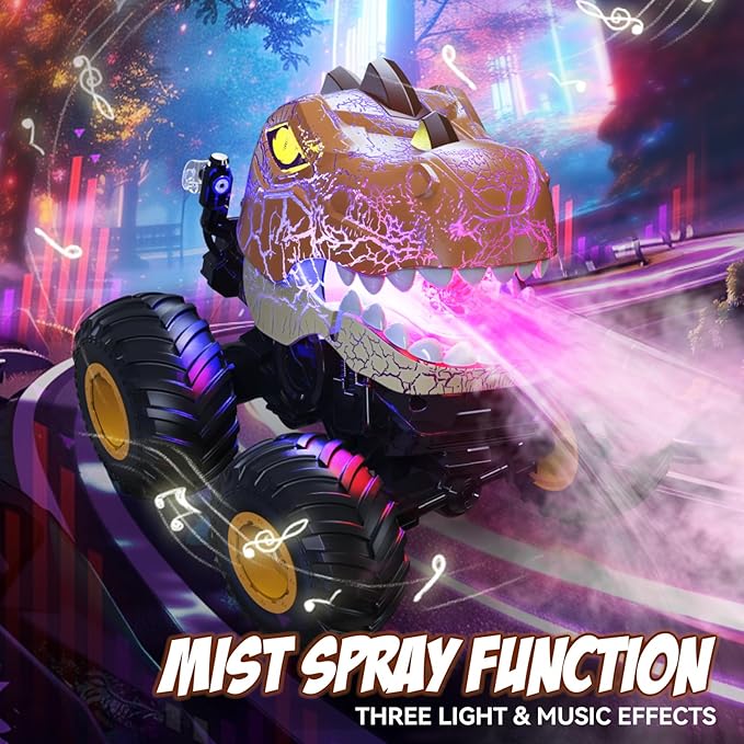 Remote Control Dinosaur Monster Truck, 2.4Ghz RC Stunt Cars for Kids 3-5 with Spray/Lights/Music, Outdoor Toys Dinosaurs Car for 4 6 7 8 Years Old Boys & Girls Christmas Birthday Gifts Ideas