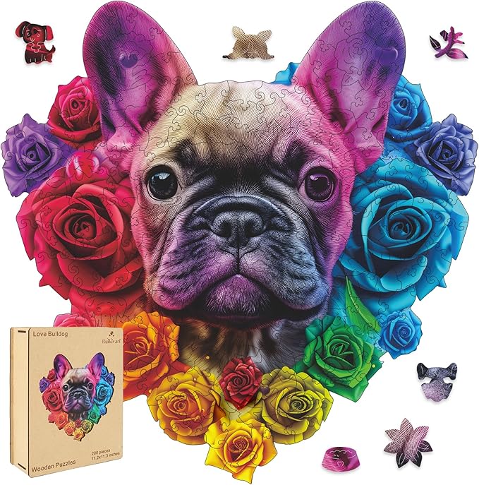Love Bulldog 200 Pieces Wooden Puzzles for Adults Dog Jigsaw Puzzles with Unique Heart Shapes Pieces Great Gift for Kids and Adults on Birthday,Thanksgiving,Christmas 11.2 x 11.3 Inches