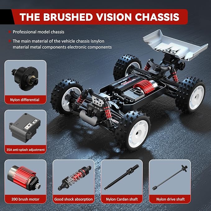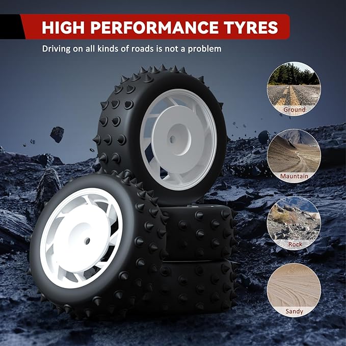 - 【4WD Independent suspension Shock Absorbers 】This 4 wheel driving car adopted with independent suspension and metal oil shocks absorber, which can effectively protect car from crashes and dropping, increased durability, offers good all-around driving capability, provided the freedom to drive where you want to drive through water, mud, sand, grass and other conditions that wouldn't have been possible before.