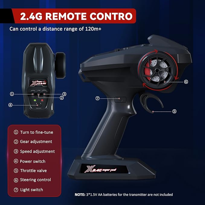 - 【1:16 High Speed RC Car】This RC car equipped with all-terrain tires and upgraded powerful motor, achieve up to 48 Km/h high speed.conquering even the most challenging terrain with ease. (Speed measured via GPS) Equipped with a professional RC transmitter, new bashers will be able to set throttle limits at 30% or 70% until they are ready to use the full speed potential.