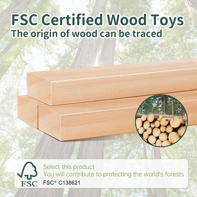 • FSC Certified Wood Toys - EverEarth wooden train set for kids and toddlers 36m+ are made of FSC certified birch wood, with non-toxic water-based paint . The wood is sturdy, durable and smooth edge. No odor.