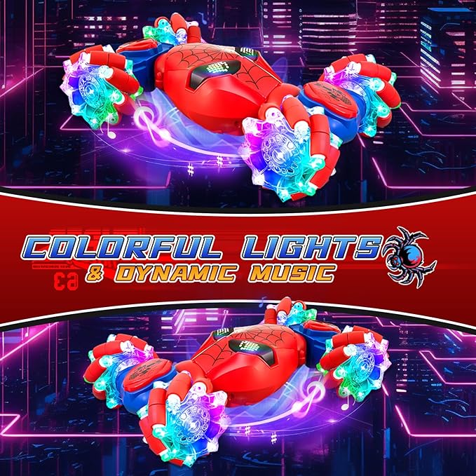 S-pider Rc Gesture Sensing Stunt Car Toys for Boys 4-14 Years Old, Drift Hand Control Remote Control Cars with Light & Music, 360°Rotation Double Side Cars Birthday Gifts for Kids Age 5 6 7 8 9 10 11