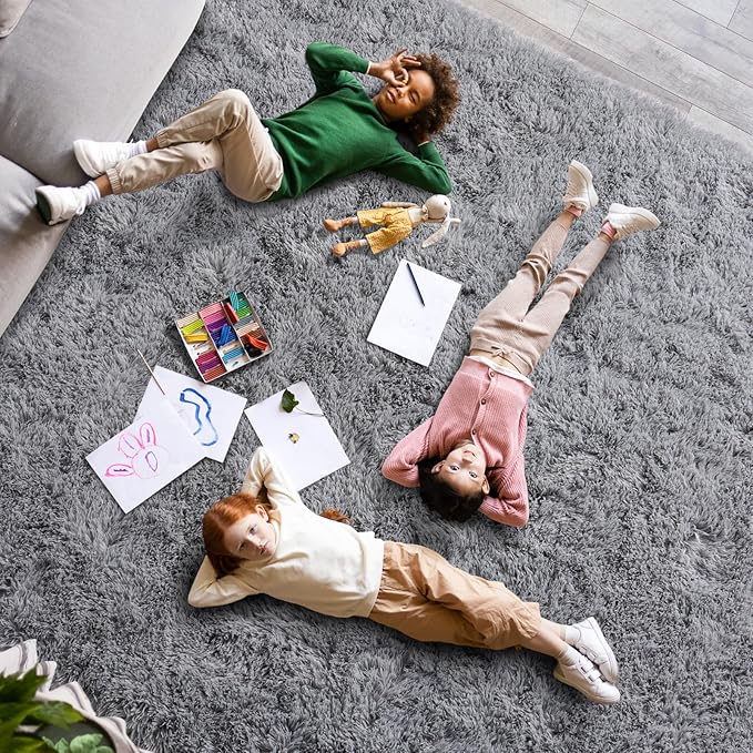 Super Fluffy 8x10 Rugs for Living Room, Modern Shag Grey Area Rugs, Soft and Cozy Plush Large Under Bed Carpet for Kids, Girls Boys and Teens Decorations for Bedroom Dorm Nursery Classroom