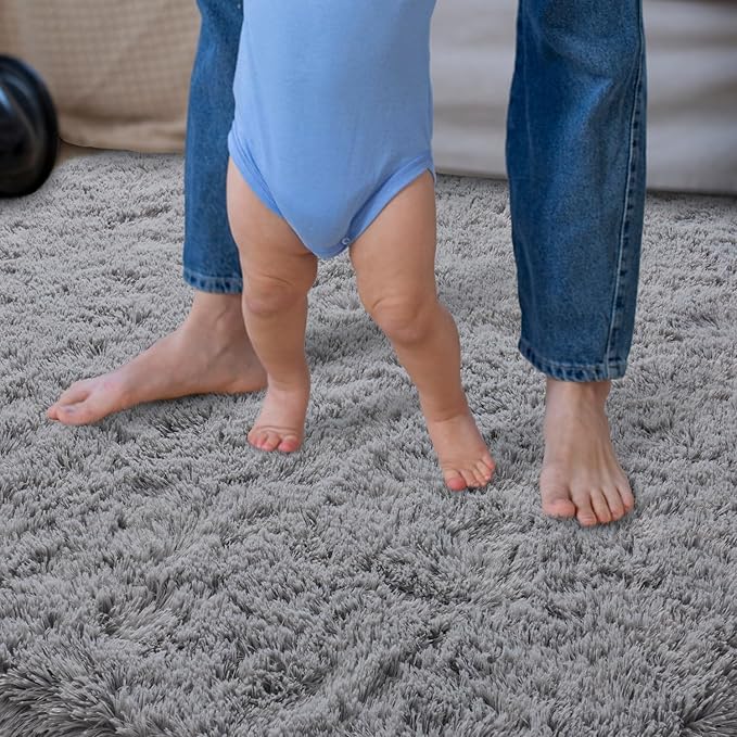 Super Fluffy Rug for Bedroom, 4x6 Feet, Modern Shag Grey Area Rugs, Soft and Cozy Plush Carpet for Kids,Girls Boys and Teens Decorations for Living Room Dorm Nursery Classroom,Grey