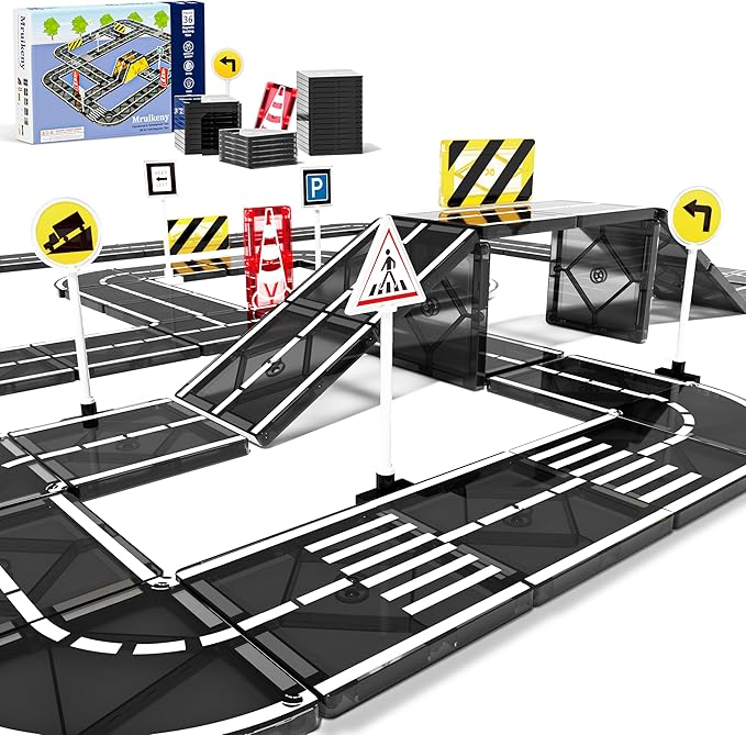 - IDEAL GIFTS TOYS FOR ALL AGES GIRLS BOYS-- The magnetic tile construction toys offers endless fun and learning opportunities for toddlers and preschool kids alike. By freely combining and building roads with magnetic tiles, they can develop hand-eye coordination, stimulate imagination and creativity, design complex road networks, add traffic signs, buildings, and vehicles, and create their own city. It is the perfect toy gift for kids aged 3-5 5-7 6-8, suitable for occasions such as birthdays, Easter, Christmas, Thanksgiving, and more.