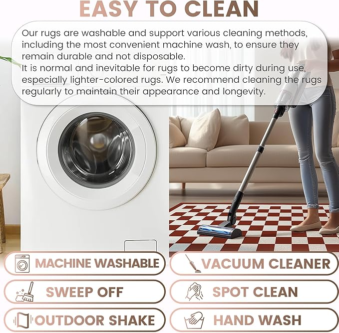 - 【MACHINE WASHABLE & FOLDABLE】The washable area rug is made of high-quality spill and stain-resistant microfiber. Low pile rug is not prone to dirt buildup, you simply need to broom or vacuum the surface to clean, or just move the entire rug into the washing machine. Foldable rugs can be moved and stored more easily without taking up much spaces. The creases and resistance to laying perfectly flat are only temporary.
