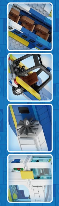 - REALISTIC DETAILS: This set of airplane building blocks includes tons of realistic details, remove the aircraft’s roof to see the cockpit, cabin, seats and aisles. The front and rear cabin door of the airplane are open-able, when the doors are fully opened, they can be perfectly connected to the boarding stairs. Kids can also connect the tractor to the airliner to simulate the real operation of the airport, enjoying the fun of professional airliner toys.