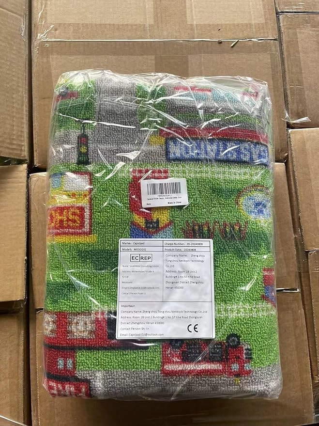 - 【Non Slip Kids Room Playmat Rug 】:Capslpad train car rug is made of high-quality nylon materials, the carpet are double-wrapped-durable and solid. the surface with machine woven dense loop texture is soft and comfortable, the back with TPR is non-slip, keeps rug in place well when the floor is dry, ensure safety for your children.