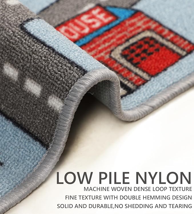 - 【Non-Slip Children's Play Mat】This children's game carpet is made of high-quality nylon materials, the carpet is double-wrapped and solid. The surface with machine woven dense loop texture is soft and comfortable, the back with TPR is non-slip, keeps rug in place well when the floor is dry, ensure safety for your children.