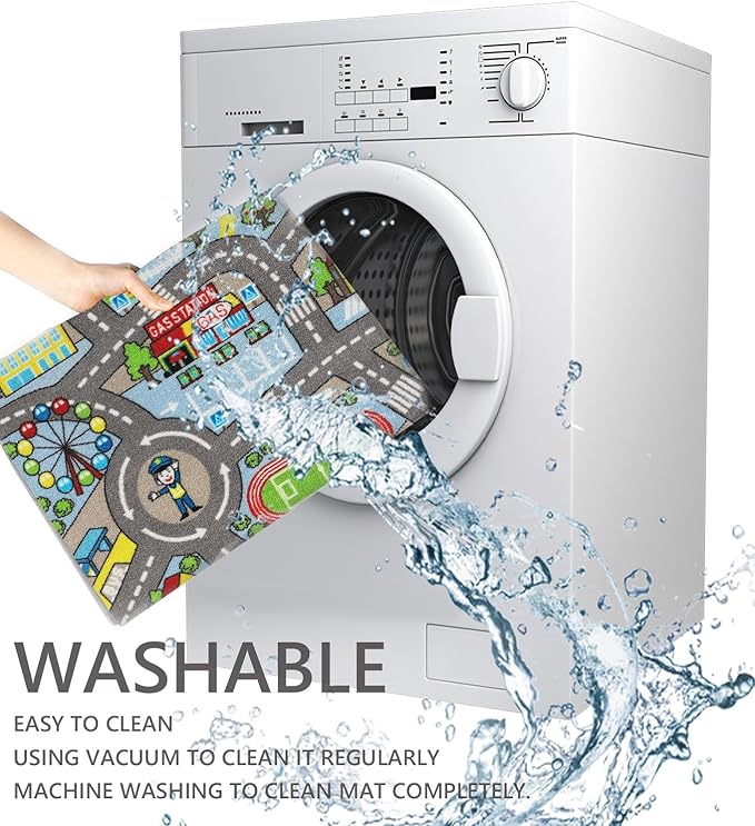 - 【Washable Kids Play Area Rug】The kids play rug is easy to clean, using vacuum to clean it regularly or machine washing to clean mat completely.【NOTE】There may be creases on mat due to folded package. Do not worry and just flatten with heavy objects patiently for 1 to 2 days or iron rug to remove.