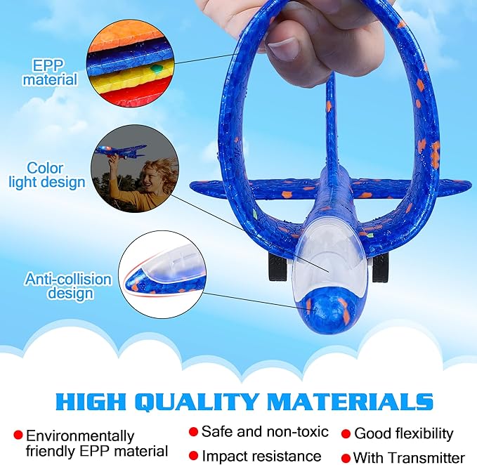 - Fun Ways To Play - Foam glider-led plans can not only use the airplane launcher to achieve flight, but also can throw airplane toys into the sky and ground manually, or slide by hand boys toys. This plane brings endless fun to children and outdoor toys and more novel ways to play are waiting for you to discover! In addition, glider planes for kids have no restrictions on the launch site, you can play indoors and outdoors!