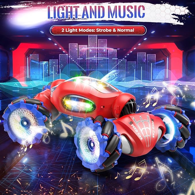 Spider Remote Control Car Toys for 6-12 Boys Girls, Birthday Gifts for Kids, 2.4Ghz 4WD Gesture Sensing RC Stunt Car with Light & Music & Spray, Double-Sided 360° Rotating Hand Control