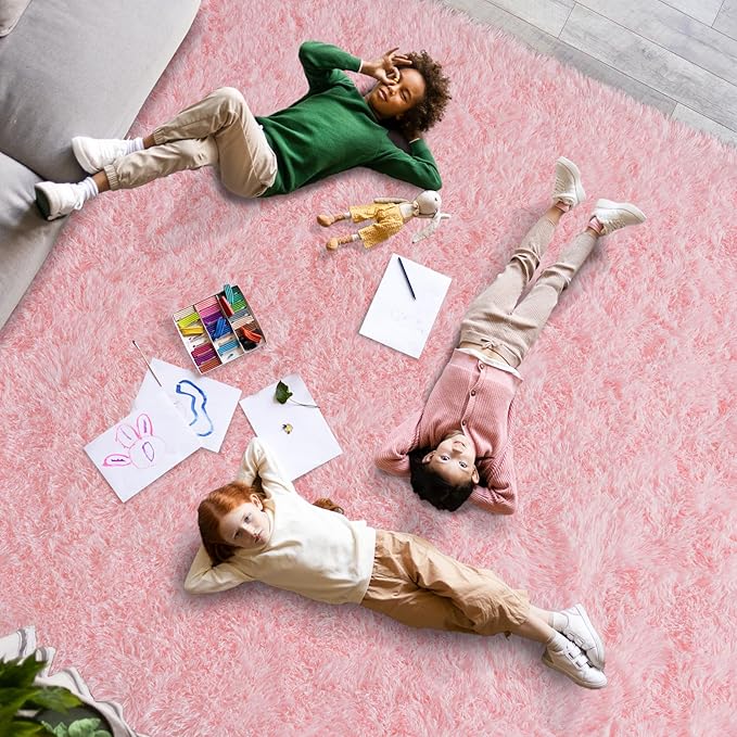 Super Fluffy 8x10 Rugs for Living Room, Modern Shag Pink Area Rugs, Soft and Cozy Plush Large Under Bed Carpet for Kids, Girls Boys and Teens Decorations for Bedroom Dorm Nursery Classroom