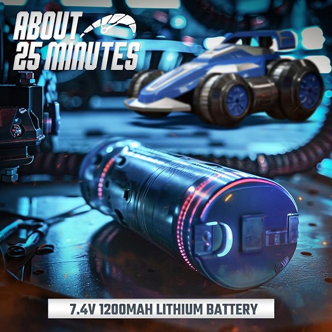 - 【Unique Design & Strong Structure】Featuring cool LED lights and music, this remote control stunt car is easy to operate with a one-key on/off function. Equipped with anti-slip tires and 4WD, it can handle various terrains, including wooden floors, sand, rocks, and grass. Made from durable ABS material, it can conquer any surface.
