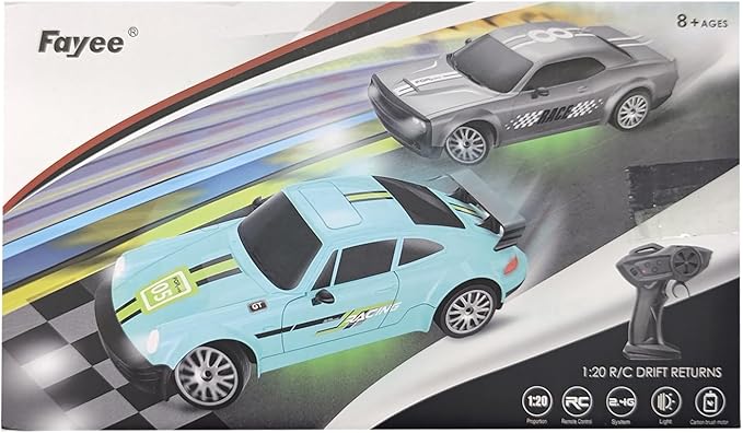 - 4WD Drift Car: 1:20 scale racing car, RC drift car can be forward, backward, left turn, right turn and accelerate proportionally. The maximum speed of the remote control car can reach up to 20KM/H, bringing you a faster high-speed racing experience. There are cool lights on the front, bottom and rear of the car, which makes driving at night more attractive