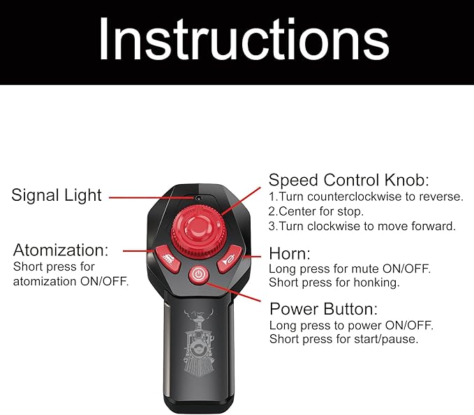 - 【Electric Train Toy with Remote Control】Compared to other ordinary trains on the market, our electric train set use remote controls. It features start switch trumpet / atomization switch, backward / forward and speed adjustment. These functions provides most convenient and most interesting for kids entertainment.