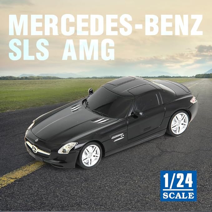 - OFFICIALLY LICENSED BY MERCEDES BENZ: Vinie's 1:24 scale remote control car is an officially licensed replica of the Benz SLS, meticulously detailed for authenticity. Suitable for both indoor and outdoor use, this RC car is rigorously tested to ensure an excellent racing experience, making it a perfect gift for kids.