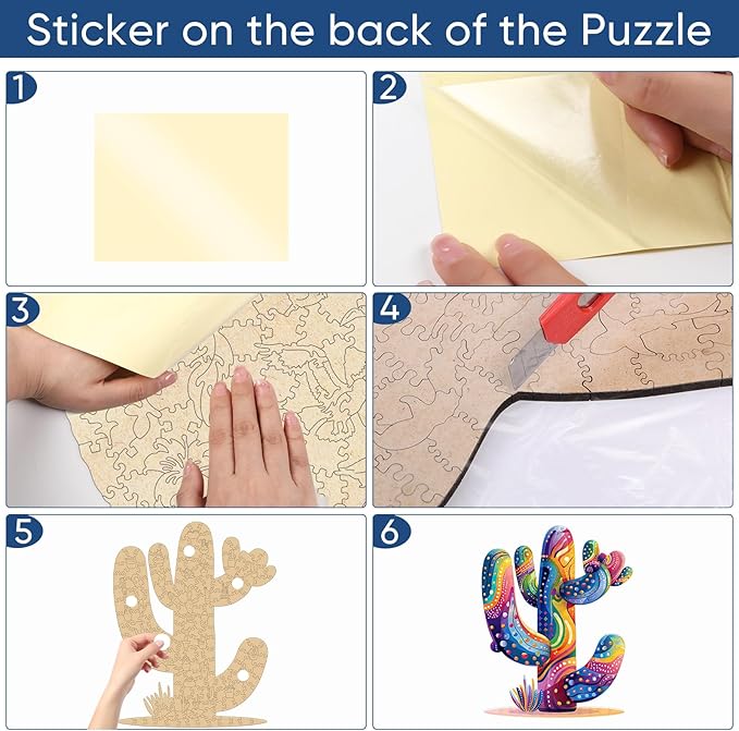 • ๐Ÿต๏ธ Colorful Cactus Wood Puzzle: Each puzzle piece is cutting art, the different irregulars wooden puzzle shape make your puzzling time more enjoyable.It will take 8 hours to finished, a great time to work with your or partner.