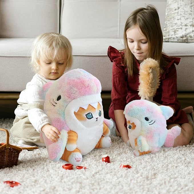 - IDEAL FOR ALL AGES: Whether it's for a toddler's bedtime stories or a tween's after-school relaxation, this Shark Cat Plush Toy is the perfect companion for kids of all ages. Its cute appearance and cuddly feel make it a hit among cat and shark lovers alike. Make a splash at your next gift-giving occasion with this shark cat plush toy. Whether you're buying for a cat lover, a shark enthusiast.