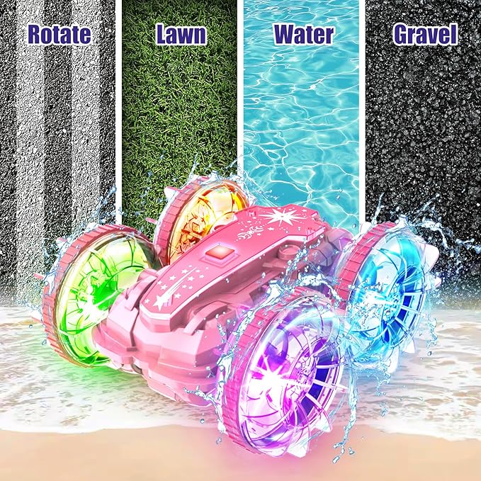 - An Ideal Gift for 6-12 Year Old Children: This remote control car combines amphibious and stunt performance capabilities, along with the dazzling LED lighting effects, making it a great gift for 6-12 year old boys and girls who love toy cars. It can bring joyful play experiences both indoors and outdoors.