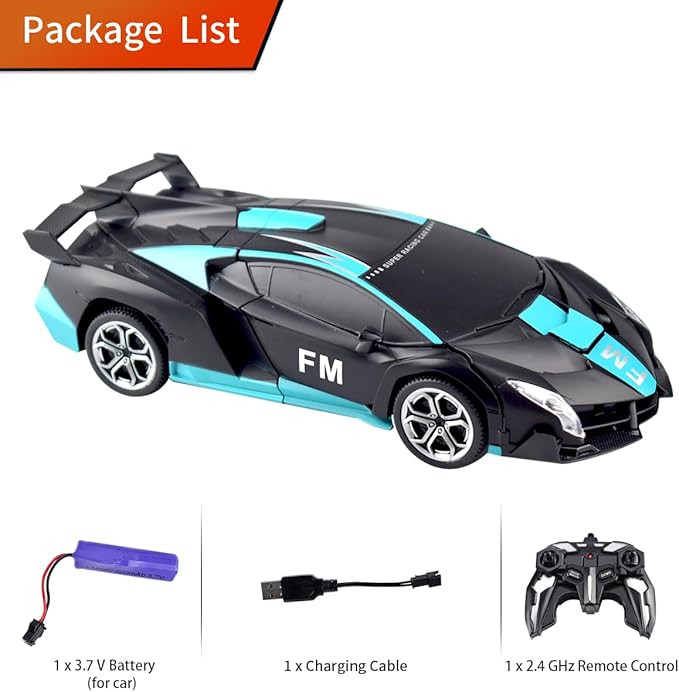 - ๐๐ใRealistic Sports CarsใProfessional appearance design. Dynamic and stylish shape.Cool lights design, can emit bright light in darkness.It has 5 smooth wheels and could Super Fast Drifting 360ยฐ turn in both robot and car.Many kids love it very much!