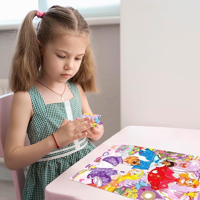 • 4-PACK TODDLER PUZZLES: high-quality cardboard puzzles for 3 year old with irregular self-correcting shapes that show diverse princes, mermaids and unicorns; Our puzzles are a great Christmas gift for kids
