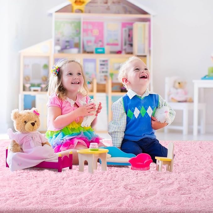 - Non-Slip Rug: The high-density durable rubber dots on the bottom of the fuzzy rug are designed for added safety, preventing it from sliding across the floor. Whether you have kid, elderly people or pet at home, fluffy kids rug ensures a safe environment