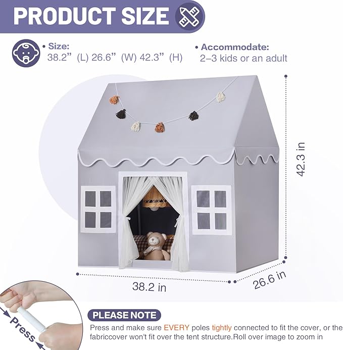 • EASY TO BUILD & CARRY ANYWHERE: Transform your kid's space into a magical wonderland in a snap! Our cute toddler tent is easy to assemble, and you don't need any grown-up tools. Whether you want it inside or outside, the magic goes wherever you do