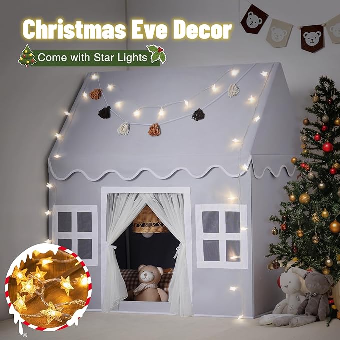 • PLAY TENT FOR PLAYTIME FUN: Open this kids tent indoor for girls up! There's the most adorable tent for kids room, magical star lights, and the prettiest tassel garlands. It's the coziest hideaway
