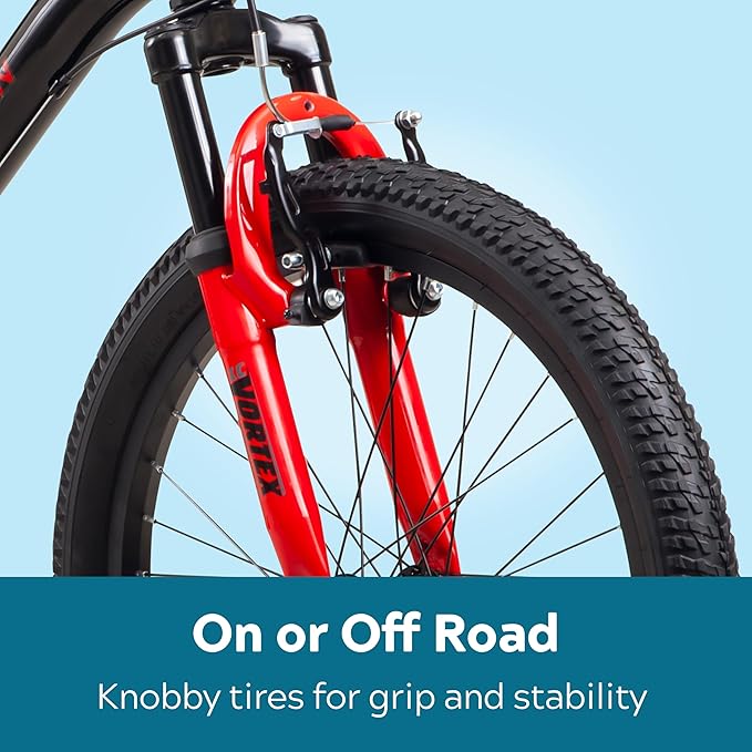 • Mountain bike featuring a steel hardtail frame that’s ready to hit the trail, 20-inch wheels fit riders ages 7 to 13, or 48 to 60 inches tall