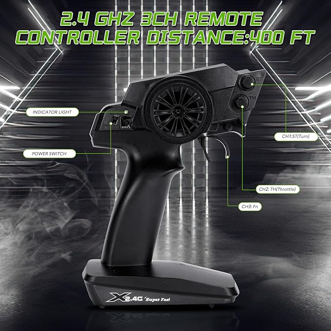 - RC Truck with Lights: Equipped with white/red lights on the front, back and both sides of the RC truck, you can switch the colours as you like to illuminate the road ahead, convenient for night time play. The RC drift car is equipped with 2.4Ghz full-function radio system with responsive steering and throttle, you can race with your friends or kids at the same time!