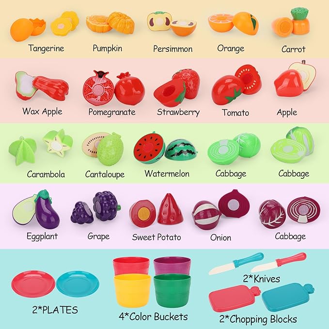 • 【Countless Role Play Game】Kids can pretend they are shopping in the grocery store, play cutting food and sorting foods. The kitchen toy set is great for engaging children in the joy of imaginative and hands-on play.