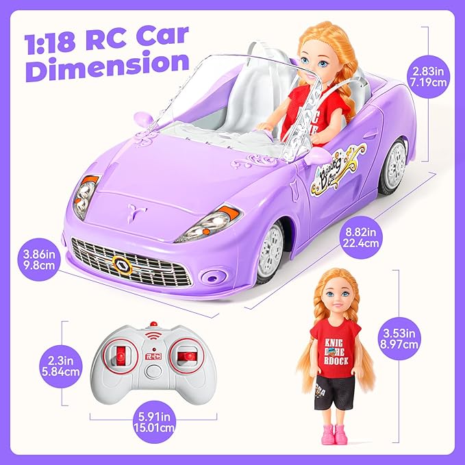 Remote Control Car for Girls 4-7, RC Car for Kids with Doll, 1:18 Scale 2.4Ghz Racing Car with Lights & Controller, Birthday for Grils