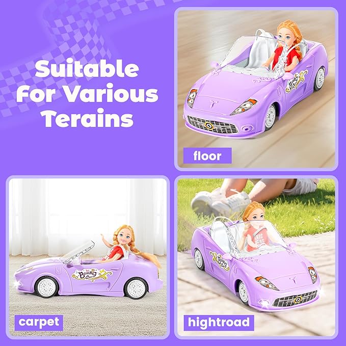 - Vibrant Design: This remote control car features a colorful, eye-catching design that appeals to girls, making playtime fun and fashionable, perfect for girls who love stylish toys. Its charming aesthetics make playtime even more exciting! And the car toy rc has two empty seats, kids can fit their favorite small dolls or animal toys in it just fine and drives it around the house for the doll to run.