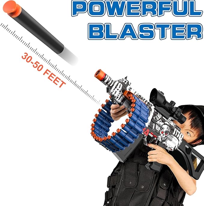 • Impressive Shooting Distance: With the ability to rapid fire to 30-50ft. Leave your competition in awe with this unbeatable full auto foam blaster!