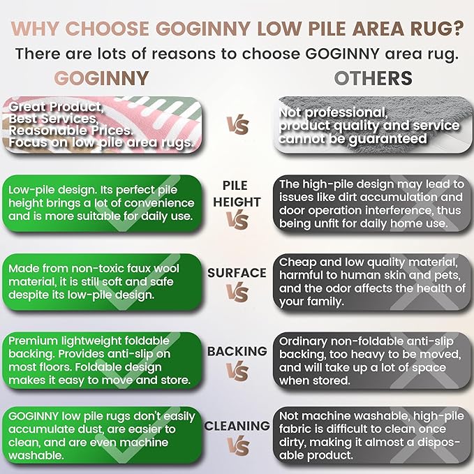 - 【ULTRA-SOFT & EYE-CATCHING COLORS】This GOGINNY area rug is made of low pile faux wool that is soft and comfortable to touch, which is perfect for families and allows your kids and pets to play safely, creating a relaxing area for your family. In addition, we adopts advanced printing technology, the pattern will not fade. NOTE: IN ORDER TO MAKE THE RUGS LONG-LASTING, THE PATTERN IS PRINTED ON THE FLEECE.