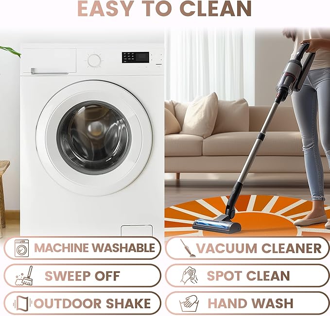 - 【MACHINE WASHABLE & FOLDABLE】The washable area rug is made of high-quality spill and stain-resistant microfiber. Low pile rug is not prone to dirt buildup, you simply need to broom or vacuum the surface to clean, or just move the entire rug into the washing machine. Foldable rugs can be moved and stored more easily without taking up much spaces. The creases and resistance to laying perfectly flat are only temporary.