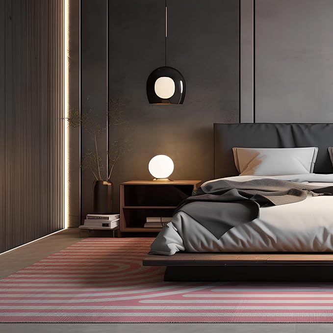 Washable 8x10 Abstract Area Rug for Living Room, Pink Rainbow Modern Boho Throw Rugs, Soft Ultra-Thin Low Pile Stain Resistant Nonslip Indoor Large Carpet for Office Dining Bedroom Playroom Classroom