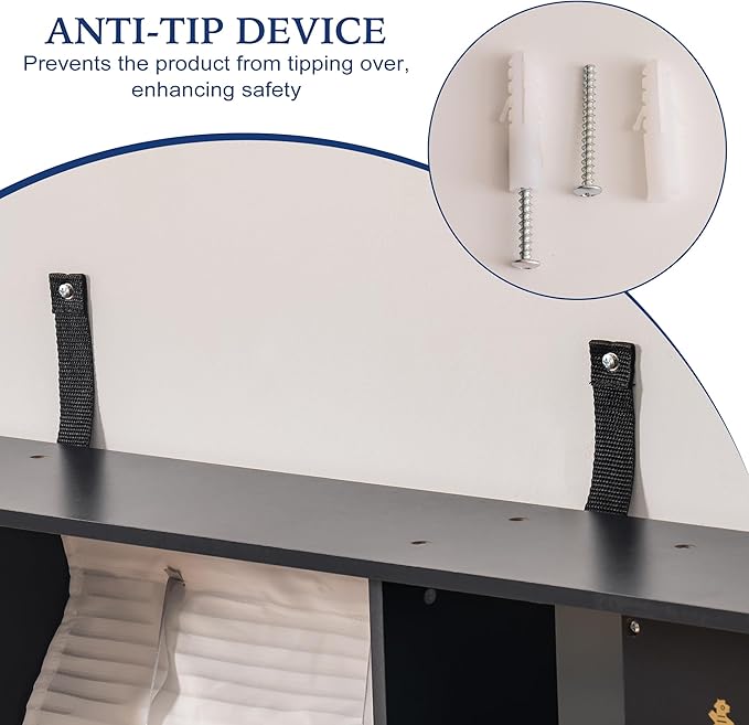 - 4. Safety First: Equipped with an anti-tip device, our play kitchen ensures that the product stays securely in place, preventing any risk of tipping over and enhancing the safety of your child during playtime.