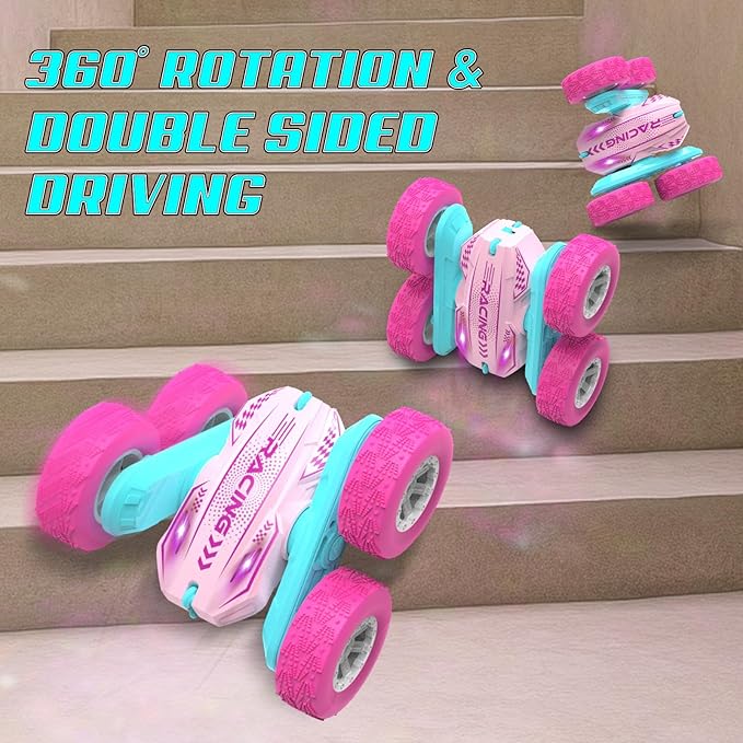 Remote Control Car for Girls, RC Car for Girls, 360° Stunt Rotating Double-Sided Race Remote Cars with Headlights, Fun Toys Christmas Birthday Gifts for 4-7 8-12 Years Old Boys Girls