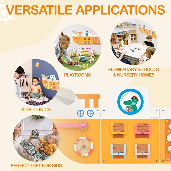 • VERSATILE PLAY OPTIONS: Ideal for classrooms, daycares, or home playrooms, this sensory board offers a space-saving design for group or independent play. It fosters social interaction and imaginative learning, making it a thoughtful gift for kids of all ages.