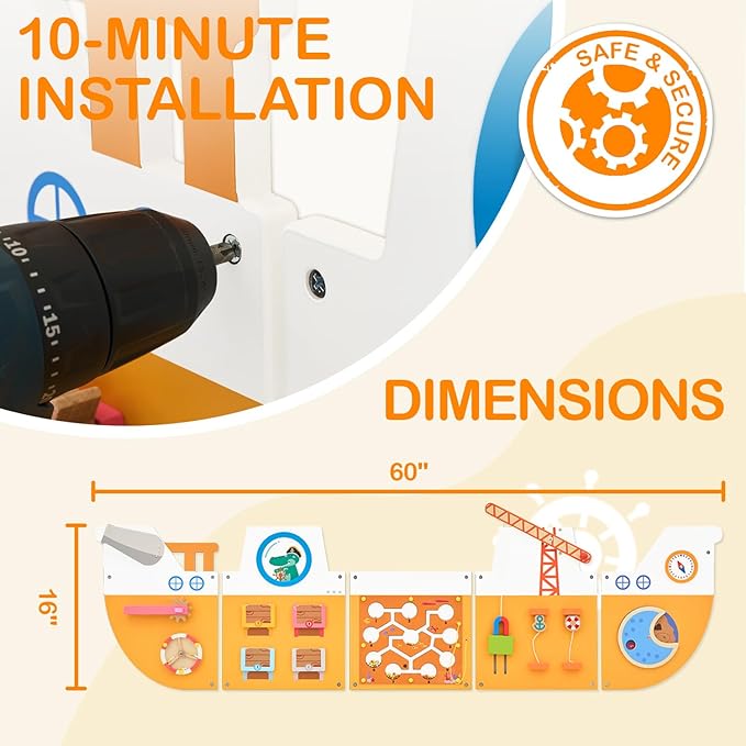 • EASY TO ASSEMBLE & DURABLE: Our busy board arrives fully assembled with pre-drilled holes and screws, making it easy to mount in under 10 minutes. Its durable construction ensures it stands up to active use in any setting.