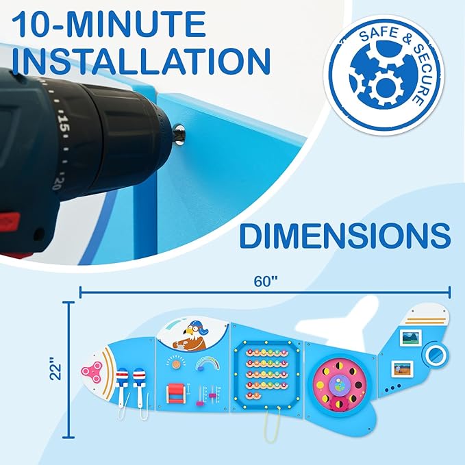 • ALL-DAY FUN AND LEARNING: With a variety of activities designed to captivate children’s attention, this sensory wall panel will keep toddlers entertained for hours. It provides a screen-free solution to keep kids busy while promoting sensory development.