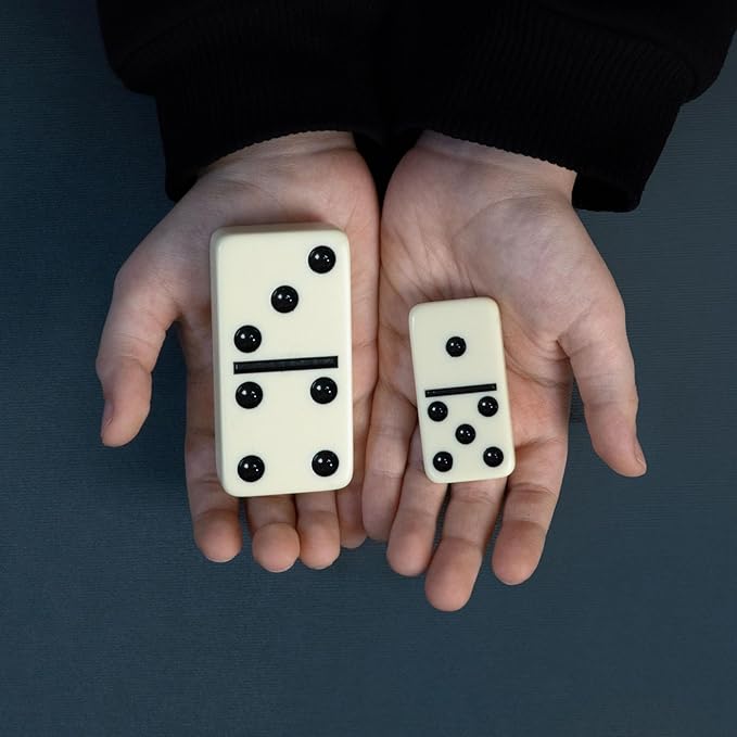 • [Unique Size? Oh yeah] Each of these domino tile measures a glorious 3" x 1.5" x 3/4" (75 x 37 x 16 mm); This Mega dominoes set for adults is so big, people will stop mid-game and go, “Wait… is that normal?” No, Karen, it’s MEGA.