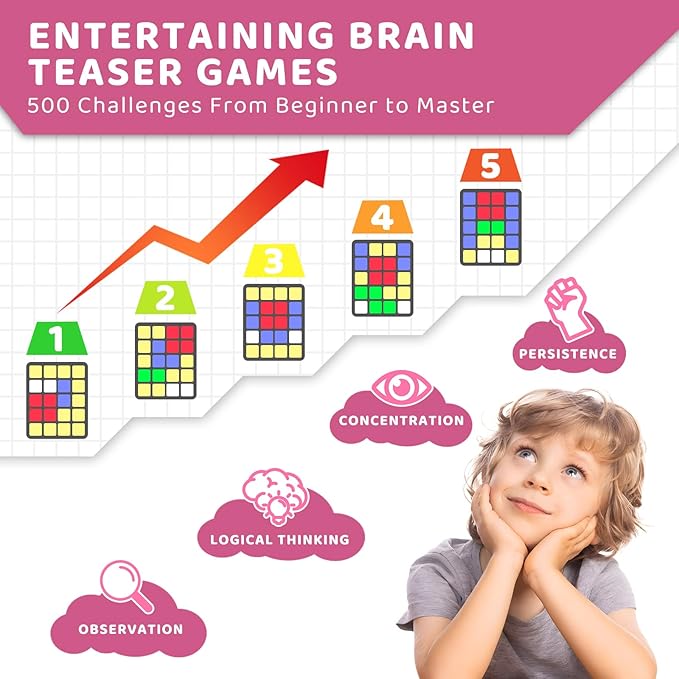 • Fun for All Ages: With levels ranging from easy to complex this puzzle game is perfect for kids 4 and up and adults Great for travel activities car rides and road trips bringing fun and brain workouts anywhere
