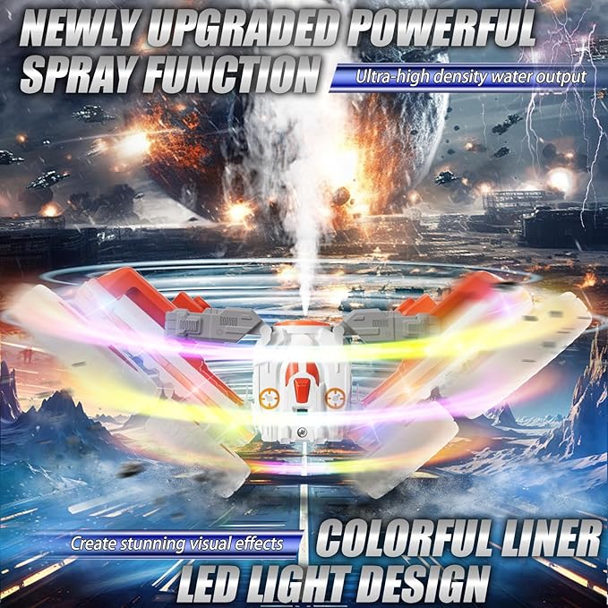 - ๐ใSpray Function & Colorful Linear LightใThe newly upgraded spray function boasts a larger capacity, fuller coverage, and a longer range. The unique, cool linear light design makes your car the most eye-catching presence at night. The spray and lights can emit colorful sprays, providing you with a fun experience unlike other stunt cars.