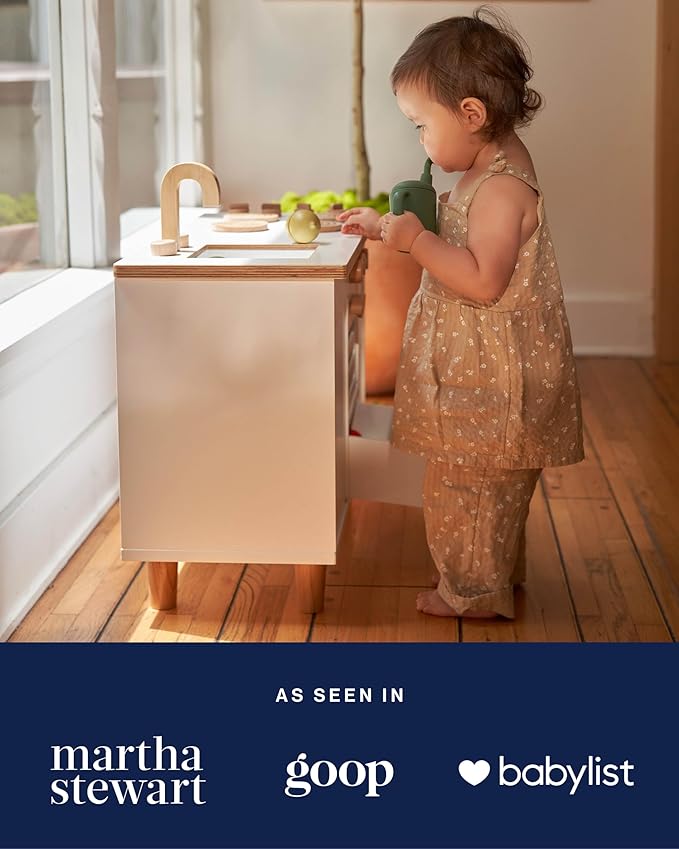• VERSATILE PLAYTIME: Ideal for creating imaginary meals and hosting tea parties, this play kitchen set complements add-on accessories like The Little Chef Set and Pots & Pans, enhancing play and expanding possibilities for creative engagement.