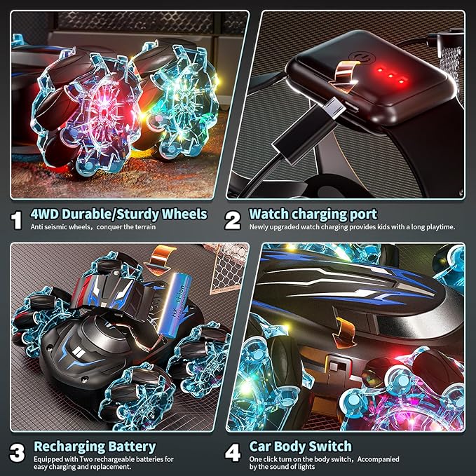 • 【All-Terrain To Play】:Gesture Sensing rc car is equipped with powerful motors and crash-resistant tires, allowing it to conquer all terrains - sand, grass, dirt, rocks, and more. Suitable for indoor and outdoor adventures,greatly satisfies the exploration and adventure spirit of boys and girls.