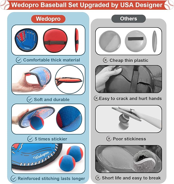 - PROMOTES OUTDOOR PLAY & ATHLETIC ABILITIES: Break free from screens and embrace the refreshing outdoors, help your children stay active and easily get them excited about all kinds of sports with the Wedopro toss and catch outside games, perfect for developing hand-eye coordination, throwing and catching abilities, social abilities, team play and more, Contributing to their overall physical development.